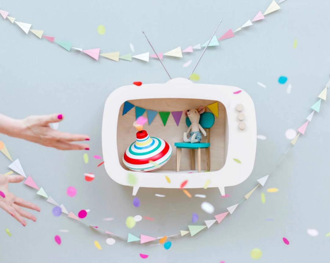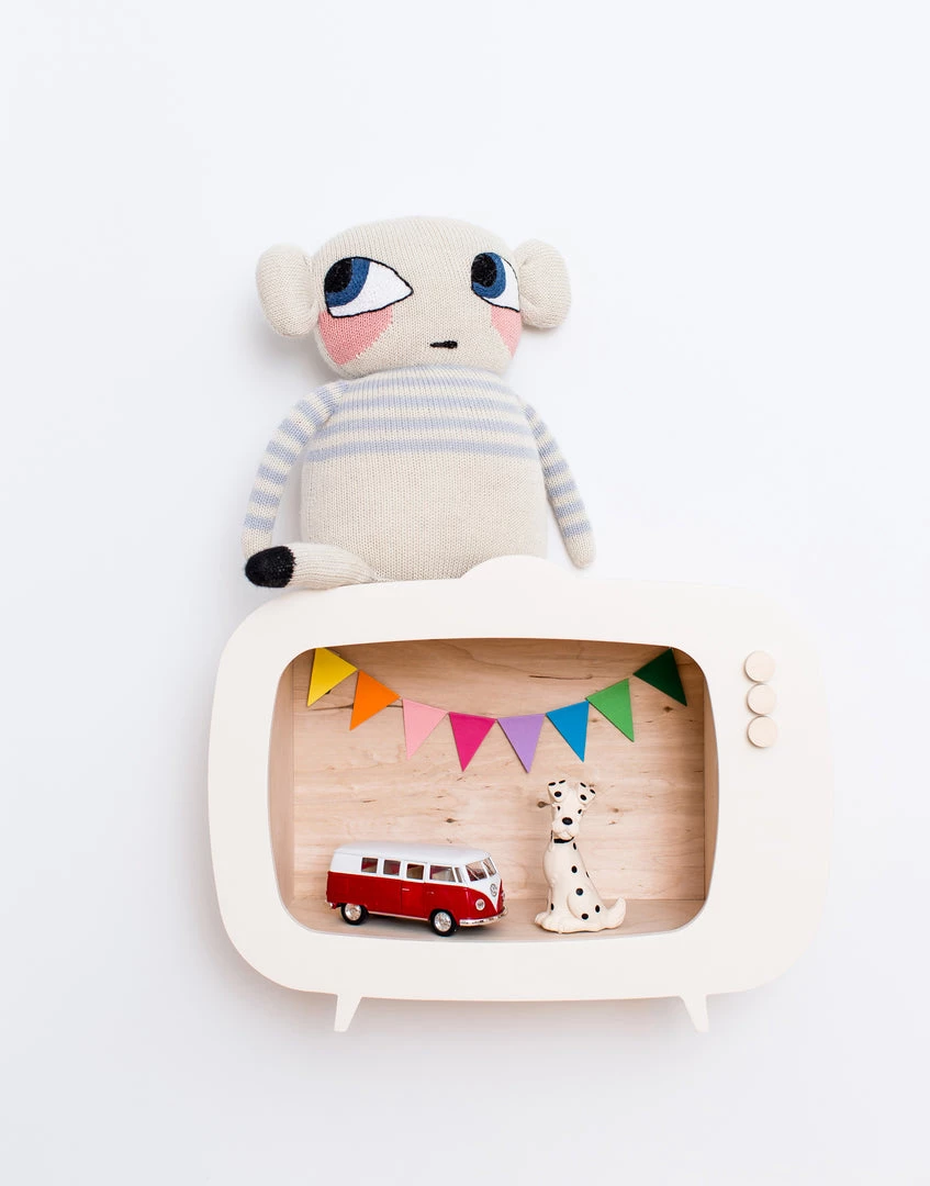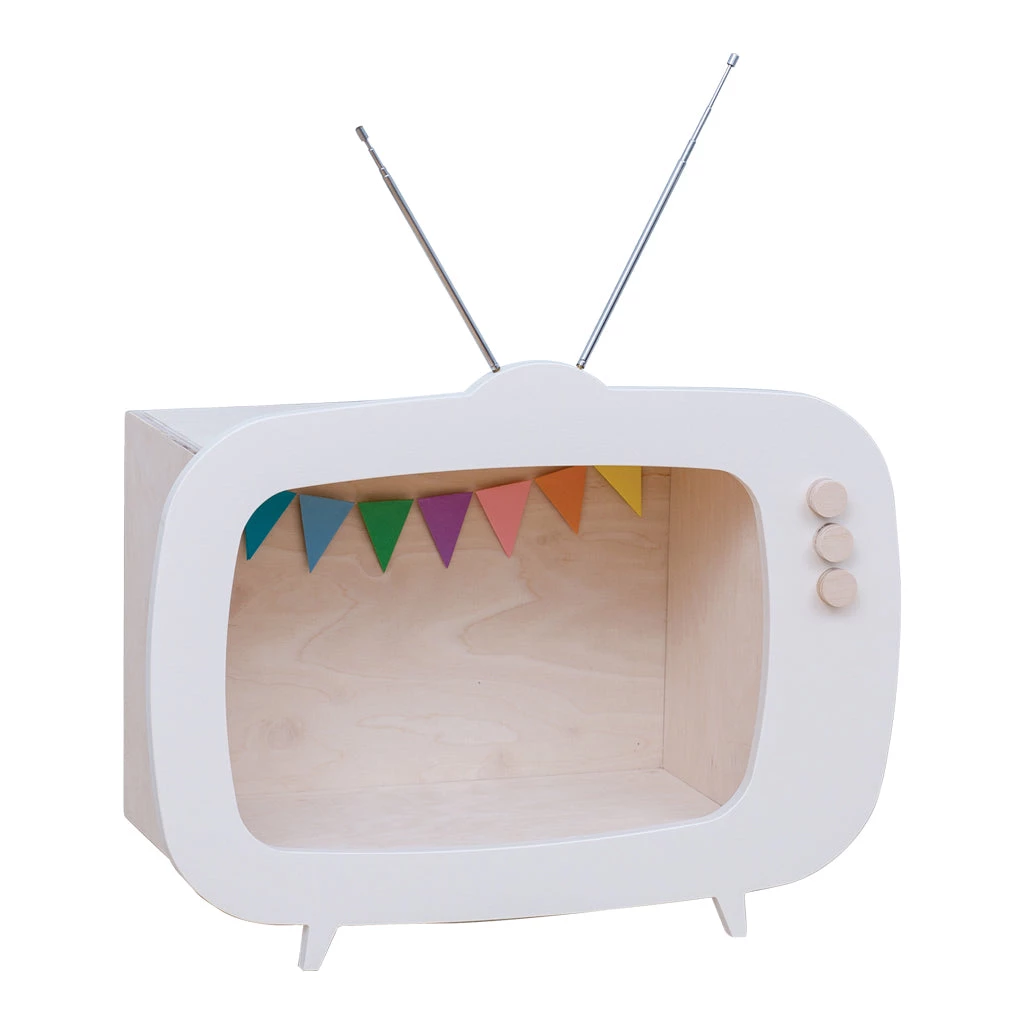 With this super retro style white wooden TV from Up Warsaw you can now direct your own film or show with your favourite toy characters – Its your very own Toy Story!